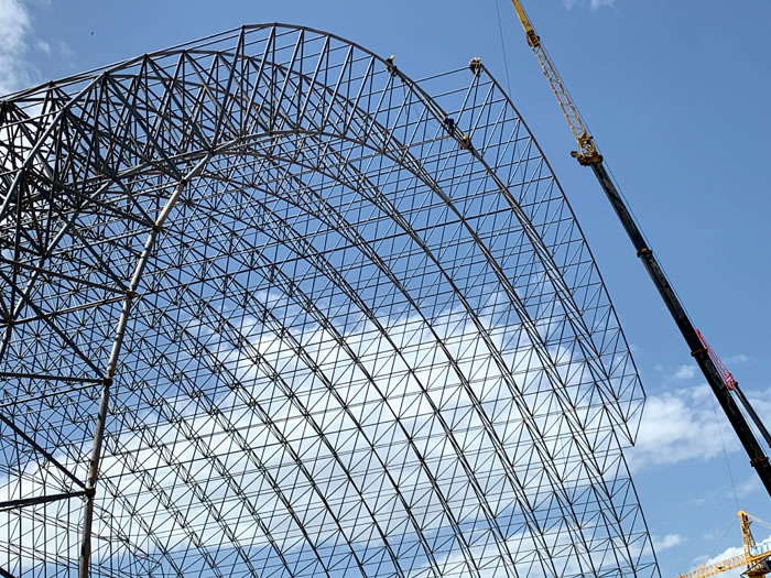 (2)网架加工前应对现场尺寸进行复测,确认无误后方可进行加工、安装;网架制作、运输、安装应遵守《空间网格结构技术规程》JGJ7-2010、《钢网架洮南螺栓球节点》JG/T 10-2009、《钢网架洮南螺栓球节点用高强度螺栓》 GB/T 16939-2016、《洮南钢结构洮南工程洮南施工规范》 GB50755-2012、《洮南钢结构洮南工程洮南施工质量验收标准》 GB50205-2020。
